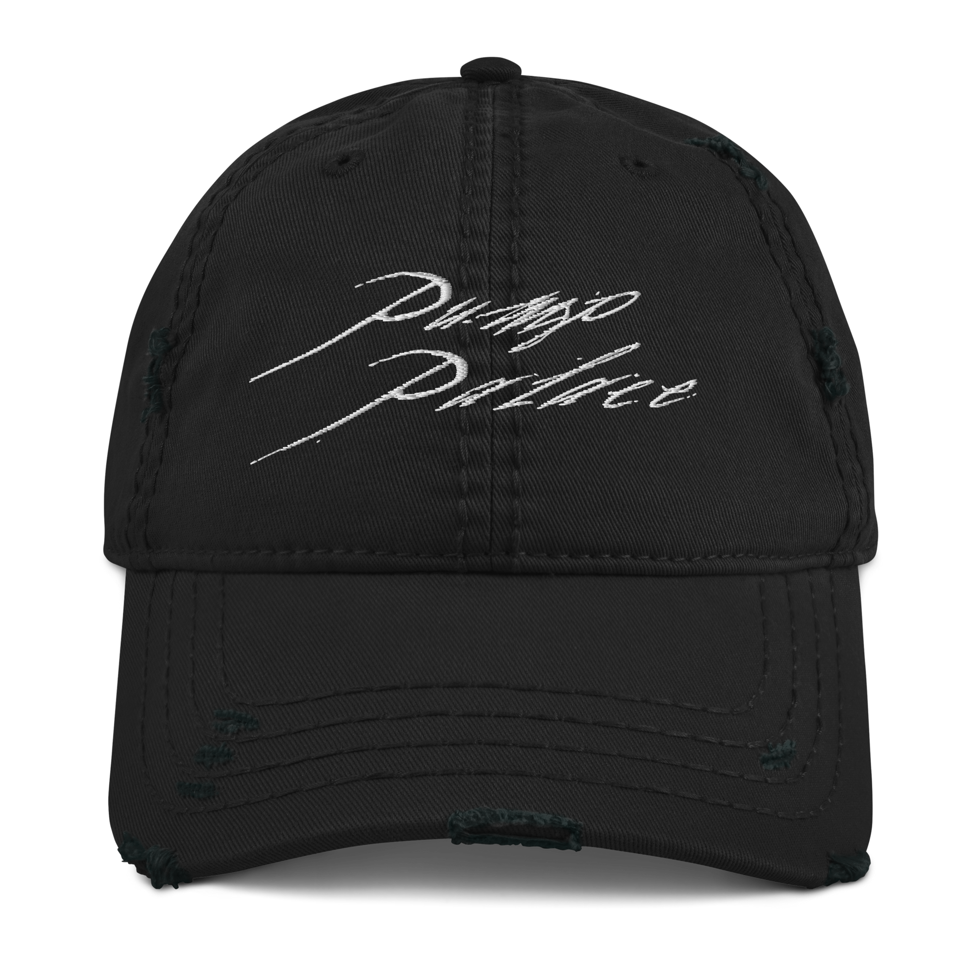 Expand your headwear collection with this fashionable dad hat. With a slightly distressed brim and crown fabric, it’ll add just the right amount of edge to your look. For a quick and easy outfit pair it with slacks, your favorite jeans, and a sports tee.